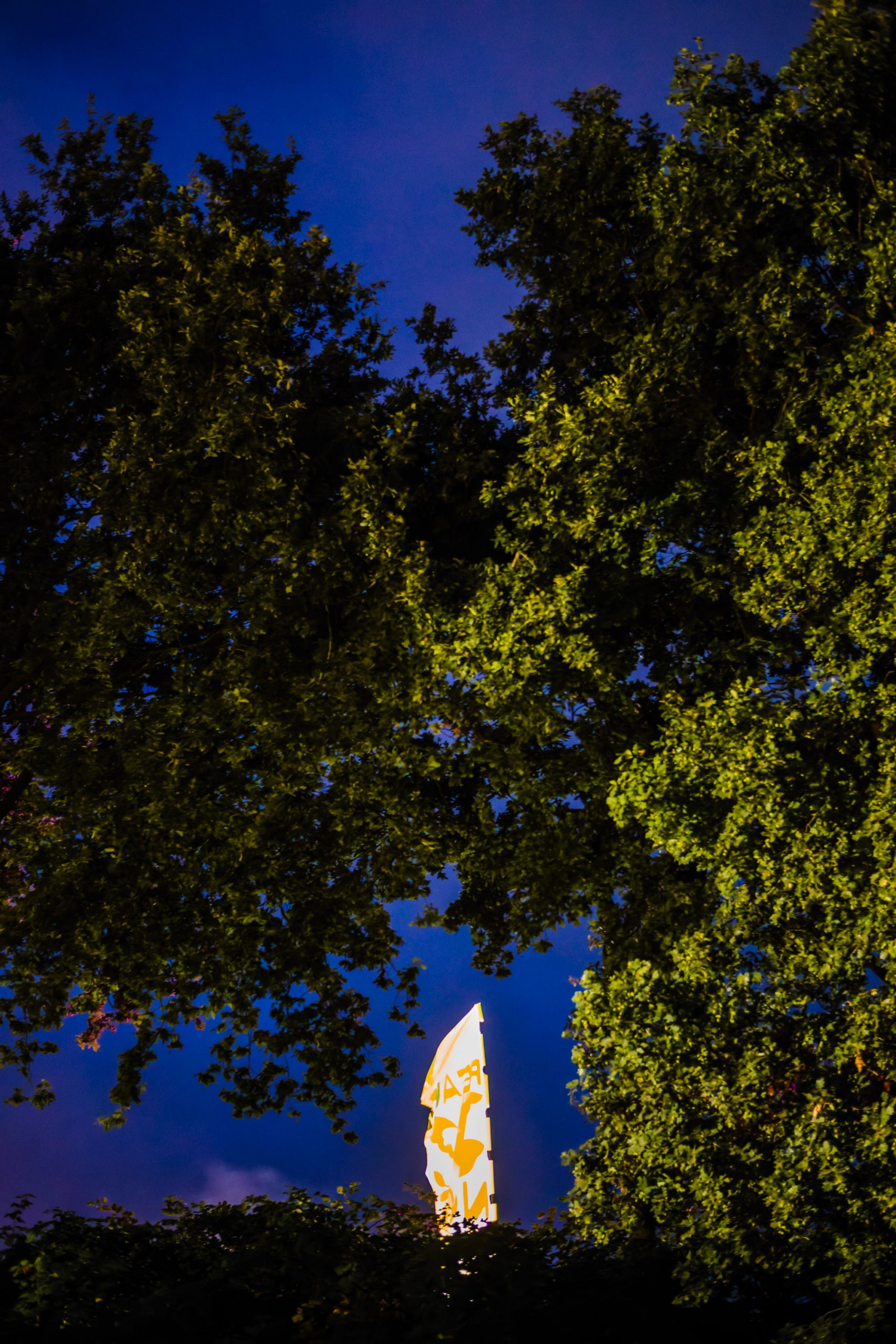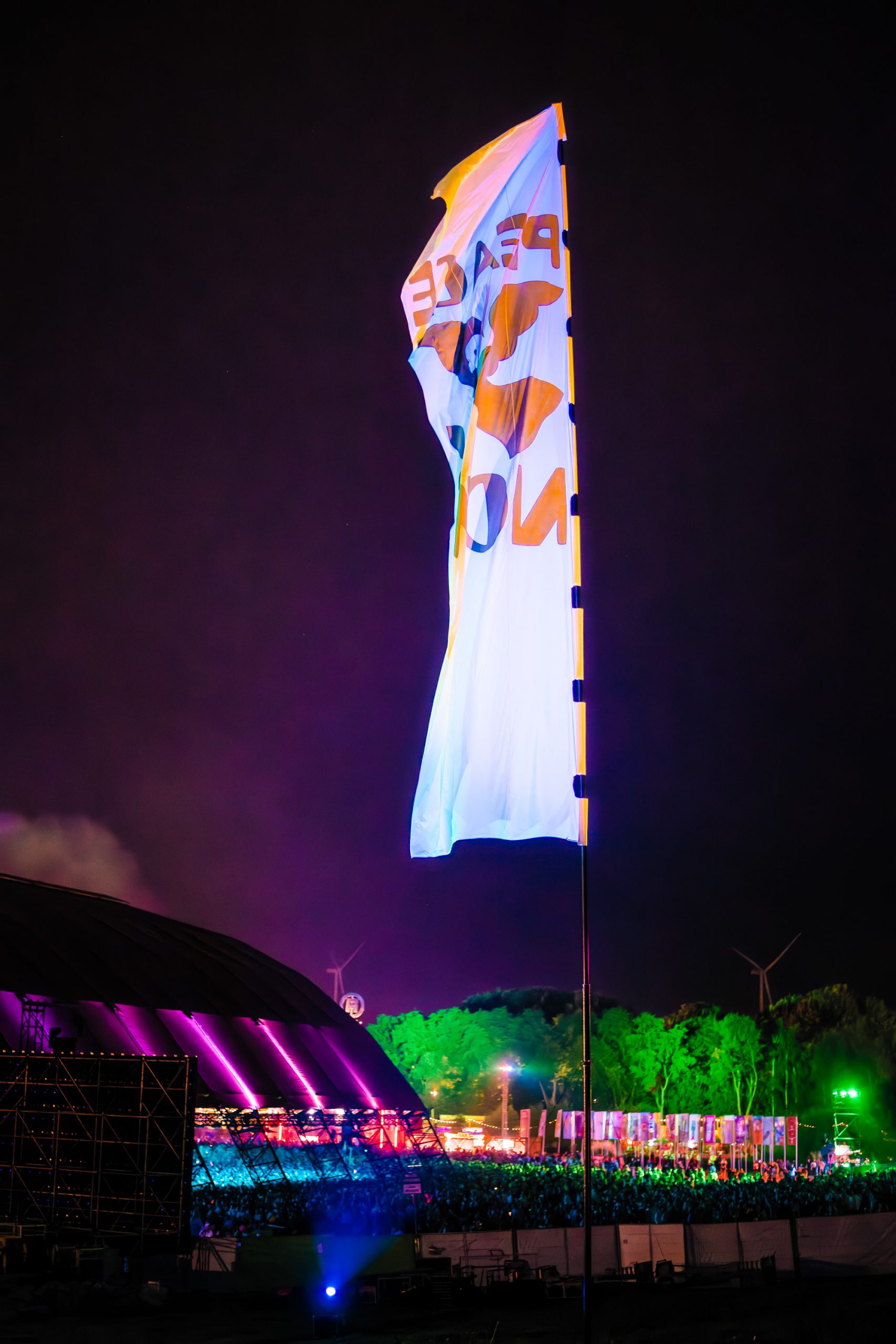 Lowlands’ stroomversnelling smeekt soms om bezinning. Even stilstaan en reflecteren op alle indrukken die op je afkomen – je weet wel, touch grass. Om je daarbij te helpen, kun je ook omhoogkijken en je vergapen aan ‘SKY-HIGH’, een massieve, minimalistische vlag die op 20 meter hoogte boven de polder wappert met de vredesduif van Max Kisman erop. De carbon mast maakt het mogelijk dat dit beweeglijke kunstwerk je meedrijft in de wind. Een symbool voor stilte, loslaten en laat overgeven aan het moment. Touch the sky!